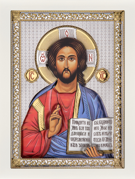 Produs în stil autentic bizantin, această icoană reprezintă o copie a originalului. Este fabricată în Italia, în ateliere cu tradiţie în iconografie. Icoana este produsă dintr-o parte metalică placată cu argint de puritate 999.9 acoperită cu un lac protector pentru a nu se deteriora în timp, suprapusă pe un suport de lemn. Mărimea 3 (13x16.5cm)