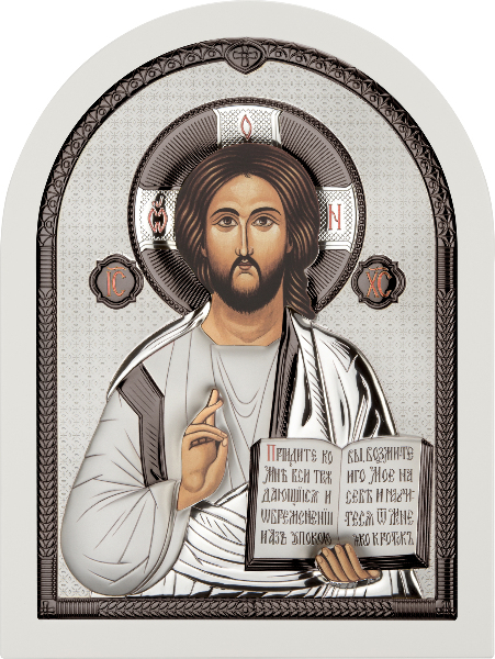 Produs în stil autentic bizantin, această icoană reprezintă o copie a originalului. Este fabricată în Italia, în ateliere cu tradiţie în iconografie. Icoana este produsă dintr-o parte metalică placată cu argint de puritate 999.9 acoperită cu un lac protector pentru a nu se deteriora în timp, suprapusă pe un suport de lemn. Mărimea : (13x16,5cm)