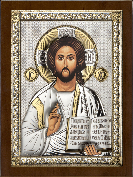 Produs în stil autentic bizantin, această icoană reprezintă o copie a originalului. Este fabricată în Italia, în ateliere cu tradiţie în iconografie. Icoana este produsă dintr-o parte metalică placată cu argint de puritate 999.9 acoperită cu un lac protector pentru a nu se deteriora în timp, suprapusă pe un suport de lemn. Mărimea : (21,5x28,5cm)