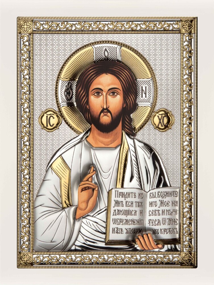 Produs în stil autentic bizantin, această icoană reprezintă o copie a originalului. Este fabricată în Italia, în ateliere cu tradiţie în iconografie. Icoana este produsă dintr-o parte metalică placată cu argint de puritate 999.9 acoperită cu un lac protector pentru a nu se deteriora în timp, suprapusă pe un suport de lemn. Mărimea : (26,5x36,5cm)