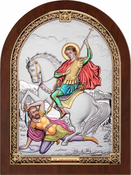 Produs în stil autentic bizantin, această icoană reprezintă o copie a originalului. Este fabricată în Italia, în ateliere cu tradiţie în iconografie. Icoana este produsă dintr-o parte metalică placată cu argint de puritate 999.9 acoperită cu un lac protector pentru a nu se deteriora în timp, suprapusă pe un suport de lemn. Mărimea : (13x16.5cm)