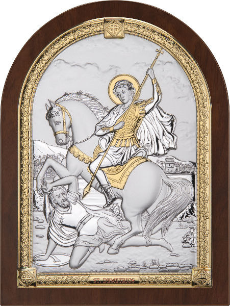 Produs în stil autentic bizantin, această icoană reprezintă o copie a originalului. Este fabricată în Italia, în ateliere cu tradiţie în iconografie. Icoana este produsă dintr-o parte metalică placată cu argint de puritate 999.9 acoperită cu un lac protector pentru a nu se deteriora în timp, suprapusă pe un suport de lemn. Mărimea : (21,5x28,5cm)