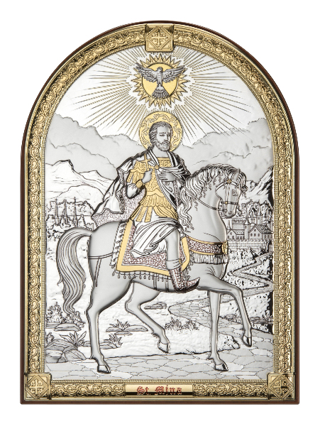 Produs în stil autentic bizantin, această icoană reprezintă o copie a originalului. Este fabricată în Italia, în ateliere cu tradiţie în iconografie. Icoana este produsă dintr-o parte metalică placată cu argint de puritate 999.9 acoperită cu un lac protector pentru a nu se deteriora în timp, suprapusă pe un suport de lemn. Mărimea : (21,5x28,5cm)