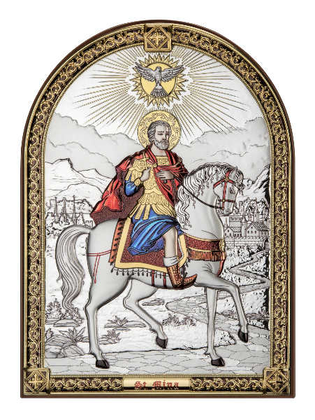 Produs în stil autentic bizantin, această icoană reprezintă o copie a originalului. Este fabricată în Italia, în ateliere cu tradiţie în iconografie. Icoana este produsă dintr-o parte metalică placată cu argint de puritate 999.9 acoperită cu un lac protector pentru a nu se deteriora în timp, suprapusă pe un suport de lemn. Mărimea : (21,5x28,5cm)