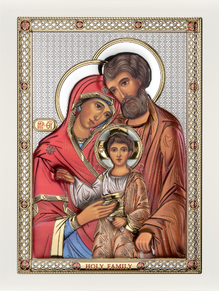 Produs în stil autentic bizantin, această icoană reprezintă o copie a originalului. Este fabricată în Italia, în ateliere cu tradiţie în iconografie. Icoana este produsă dintr-o parte metalică placată cu argint de puritate 999.9 acoperită cu un lac protector pentru a nu se deteriora în timp, suprapusă pe un suport de lemn. Mărimea : (10x12cm)