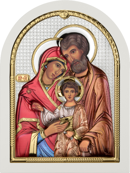 Produs în stil autentic bizantin, această icoană reprezintă o copie a originalului. Este fabricată în Italia, în ateliere cu tradiţie în iconografie. Icoana este produsă dintr-o parte metalică placată cu argint de puritate 999.9 acoperită cu un lac protector pentru a nu se deteriora în timp, suprapusă pe un suport de lemn. Mărimea : (10x12cm)