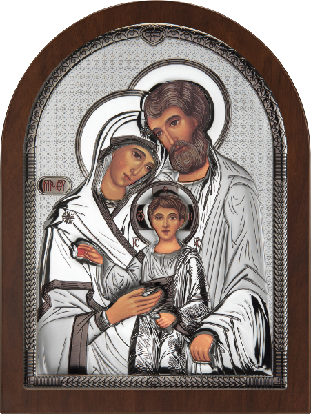 Produs în stil autentic bizantin, această icoană reprezintă o copie a originalului. Este fabricată în Italia, în ateliere cu tradiţie în iconografie. Icoana este produsă dintr-o parte metalică placată cu argint de puritate 999.9 acoperită cu un lac protector pentru a nu se deteriora în timp, suprapusă pe un suport de lemn. Mărimea : (10x12cm)