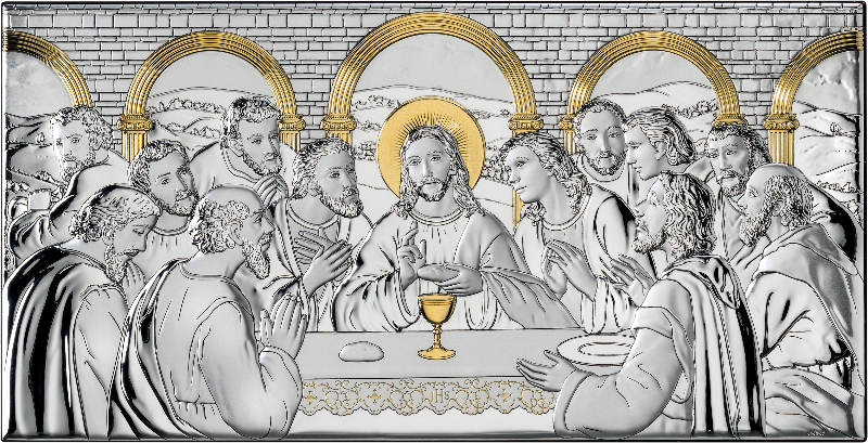 Produs în stil autentic bizantin, această icoană reprezintă o copie a originalului. Este fabricată în Italia, în ateliere cu tradiţie în iconografie. Icoana este produsă dintr-o parte metalică placată cu argint de puritate 999.9 acoperită cu un lac protector pentru a nu se deteriora în timp, suprapusă pe un suport de lemn. Mărimea : (28x56cm)