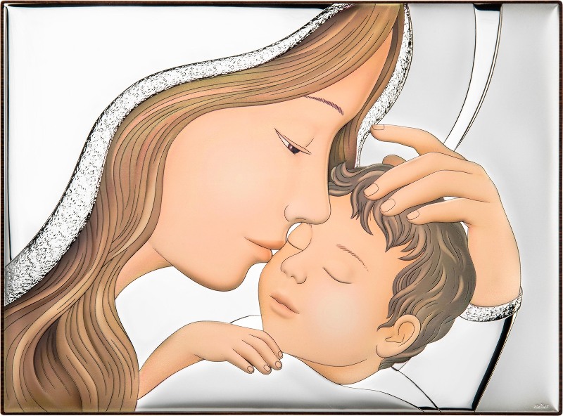 Produs în stil autentic bizantin, această icoană reprezintă o copie a originalului. Este fabricată în Italia, în ateliere cu tradiţie în iconografie. Icoana este produsă dintr-o parte metalică placată cu argint de puritate 999.9 acoperită cu un lac protector pentru a nu se deteriora în timp, suprapusă pe un suport de lemn. Mărimea : (7x10cm)