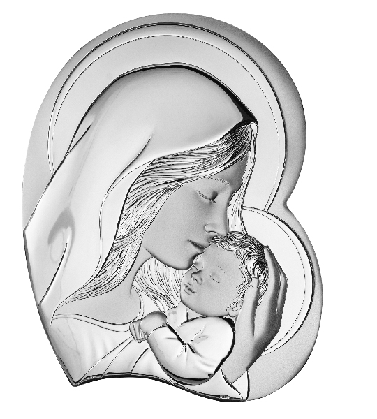 Produs în stil autentic bizantin, această icoană reprezintă o copie a originalului. Este fabricată în Italia, în ateliere cu tradiţie în iconografie. Icoana este produsă dintr-o parte metalică placată cu argint de puritate 999.9 acoperită cu un lac protector pentru a nu se deteriora în timp, suprapusă pe un suport de lemn. Mărimea : (33x41cm)