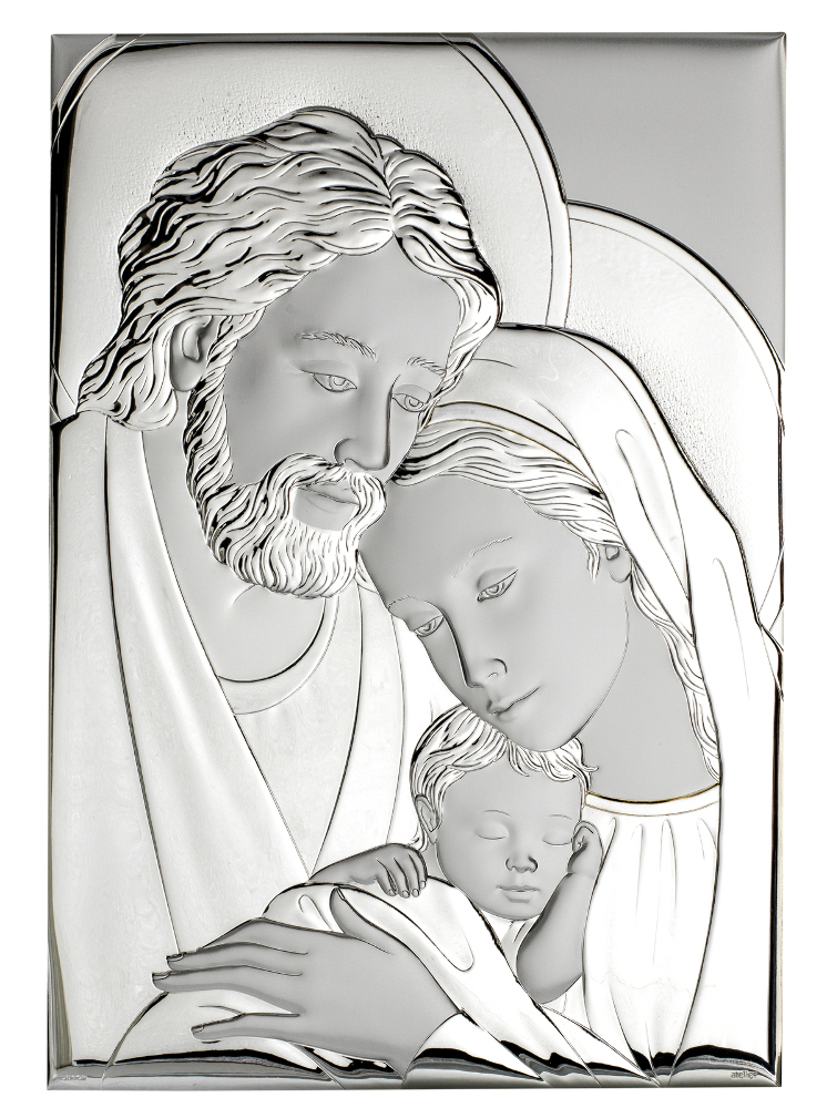 Produs în stil autentic bizantin, această icoană reprezintă o copie a originalului. Este fabricată în Italia, în ateliere cu tradiţie în iconografie. Icoana este produsă dintr-o parte metalică placată cu argint de puritate 999.9 acoperită cu un lac protector pentru a nu se deteriora în timp, suprapusă pe un suport de lemn. Mărimea : (15x21cm)
