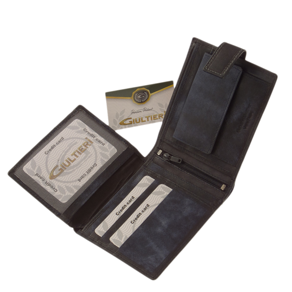 Un portofel premium cu aspect de lux este accesoriul de care are nevoie fiecare bărbat. A fost confecţionat din cele mai bune materiale pentru a se obţine un portofel cu un design deosebit având o rezistenţă cât mai bună. Este fabricat din piele naturală de bovine. Ambalăm portofelele într-o cutie cadou personalizată. Dimensiuni: 12x10 cm.