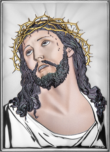 Produs în stil autentic bizantin, această icoană reprezintă o copie a originalului. Este fabricată în Italia, în ateliere cu tradiţie în iconografie. Icoana este produsă dintr-o parte metalică placată cu argint de puritate 999.9 acoperită cu un lac protector pentru a nu se deteriora în timp, suprapusă pe un suport de lemn. Mărimea : (10x12cm)
