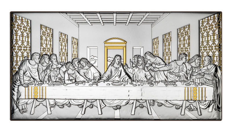 Produs în stil autentic bizantin, această icoană reprezintă o copie a originalului. Este fabricată în Italia, în ateliere cu tradiţie în iconografie. Icoana este produsă dintr-o parte metalică placată cu argint de puritate 999.9 acoperită cu un lac protector pentru a nu se deteriora în timp, suprapusă pe un suport de lemn. Mărimea : (22x43cm)