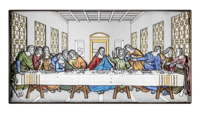 Produs în stil autentic bizantin, această icoană reprezintă o copie a originalului. Este fabricată în Italia, în ateliere cu tradiţie în iconografie. Icoana este produsă dintr-o parte metalică placată cu argint de puritate 999.9 acoperită cu un lac protector pentru a nu se deteriora în timp, suprapusă pe un suport de lemn. Mărimea : (22x43cm)